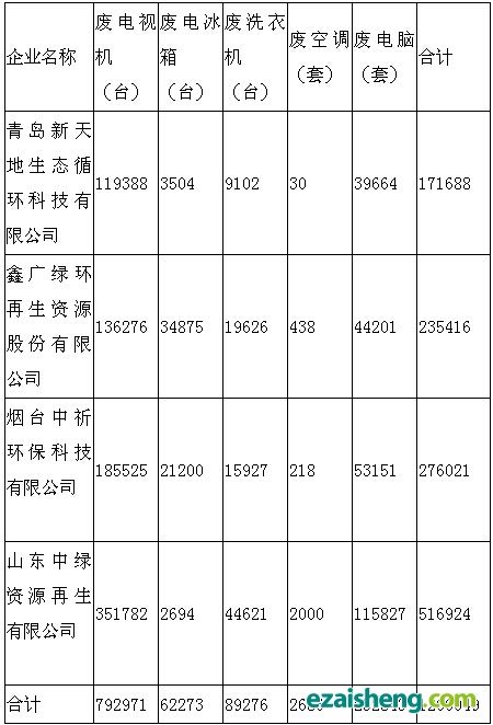 根据山东省环境保护厅、财政厅《关于组织开展废弃电器电子产品拆解处理情况审核工作的通知》(鲁环函〔2013〕382号)要求,对照相关法规、标准,2016年1月,按照第三方独立审核与省、市、区(市)三级环保部门综合审核、逐级过关的审核模式,省环保厅组织省固废和危化品污防中心、废弃电器电子产品处理企业所在地的市、区两级环保部门及第三方审核机构,采取随机抽样、资料审核、“三流合一”比对、现场检查、视频点数与历史视频检查相结合的方式,对青岛新天地生态循环科技有限公司、鑫广绿环再生资源股份有限公司、烟台中祈环保科技有限公司、山东中绿资源再生有限公司4家废弃电器电子产品处理企业2015年第4季度废弃电器电子产品拆解处理情况进行了审核,重点审核了各类基础记录和原始凭证的真实性、基础数据和证明材料内在的逻辑性、拆解操作和关键拆解产物管理的规范性等内容。经审核,上述4家处理企业2015年第4季度废弃电器电子产品拆解处理种类数量如下表: 为体现公开、公平、公正的原则,接受公众监督,现将审核情况在《山东环境》网站上公示5天。公示期间,我厅接受公众来电、来信、来访等多种形式反映问题,我厅将对所反映的问题进行调查、核实和处理。 公示日期:2016年2月23日至27日。 公示期间设立下列举报电话和信箱: 电话:0531-87299053 邮箱:sdswgzx@163.com 2016年2月23日