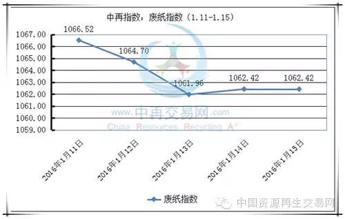 中再交易网废纸分析人士认为,未来一周,废旧黄板纸市场,北方地区还将延续下调趋势;由于回收量到达峰值,废旧书本价格下周会迎来新一轮的下调;废旧报纸价格将会有所维稳。 本周废纸市场还是下调大于上涨。国废黄板纸山东价格下调较多,华东和华南地区虽有上涨,但是难敌北方整体下行趋势;废旧书本价格有所下调;废旧报纸价格本周也有所下调。国外废纸基本维稳。 本周废纸指数为涨少跌多,先跌后小幅拉涨。周一指数为1066.52,周五指数为1062.42,约下调了0.38%。 (图1:数据来源于中再交易网) 1、国废市场 本周国废黄板纸价格受北方地区的成品纸价格下调,并且北方库存高位,又因北方的造纸厂受环保影响较小,所以竞争压力较大,导致价格压低;临近春节,华东和华南地区的包装纸需求增多,而纸厂数量的减少,造成了供不应求的局面,国废黄板纸价格均有小幅提涨。受寒假已来,废旧书本的回收量增加,价格相应下调;各大报纸生产厂家囤货已足,需求相应减少,价格小幅下滑。 (图2:数据来源于中再交易网) 2、外废市场 本周受欧美传统节日“圣诞节”假期影响,开工率仍较低,加上2015年全球经济的疲软,所以整体假期状态有延长,美废和欧废价格基本维持在假期前的价格,美废有小幅上涨;日废价格维稳。 (图3:数据来源于中再交易网) 国废:未来一周,废旧黄板纸市场,北方地区还将延续下调趋势;由于回收量到达峰值,废旧书本价格下周会迎来新一轮的下调;废旧报纸价格将会有所维稳。 外废:未来一周,美废达到开工率后将会上涨,欧废价格还将维稳,日废价格受春节前我国纸厂囤货潮的带动,将会小幅上涨。 1、国际浆价依旧疲软 国际经济形势不佳使浆纸市场持续疲软,继2015年11月长短纤浆价调降后,2015年12月短纤浆价格进一步下调。由于纸浆库存的增加,也使长短纤浆价的支撑力薄弱,以致价格持续探底。 2、广东淘汰20家造纸厂87条造纸生产线 日前,为了响应国家工信部关于淘汰落后和过剩产能的号召,广东省经济和信息化委员会率先公示了2015年重点工业行业淘汰落后和过剩产能企业名单。此次淘汰名单中,共涉及造纸企业20家,水泥企业7家,印染企业2家。 3、纸包装将成包装行业主导 塑料袋,是我们生活中最常用的物品,去菜市场买菜、去超市购物都离不开它的身影。目前市场上,虽然可降解塑料已经开始应用,但普及率太低,很多产品包装材料依然选择的是不可回收材料。相较于塑料包装所造成的污染与资源浪费,纸包装则更加环保健康。